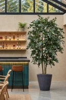 Each tree is hand-assembled using high-quality artificial foliage to replicate the natural variation and density of a real ficus. The leaves are arranged to achieve a balanced, lifelike silhouette, making it ideal for large open areas, hospitality settings, or commercial interiors.