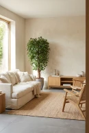 Enhance your space with our artificial ficus tree and sleek pot combination. Featuring lush green leaves and a natural bark trunk that seamlessly blends into any decor, its perfect balance of height and subtlety adds depth to your interior without overpowering the room.