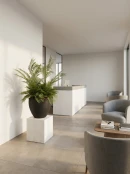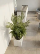 A layered composition of arching areca palm fronds rising above a dense base of leatherleaf ferns, this tropical mix creates instant volume and movement. Designed as a ready-made statement planter, this arrangement works beautifully in hotel lobbies, office reception areas, retail spaces, and residential interiors that require height without overwhelming the room.