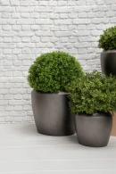 The Earl Dumpy Pot stands out with its weathered metallic texture - less polished than brushed metal, but rich in character. Available in warm mocha or cool slate, it offers a rustic yet refined look that works beautifully in a range of interiors and garden styles. Designed for strength without the weight, itís a durable choice for indoor and outdoor environments, available in multiple sizes for maximum versatility.