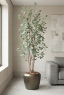 With its distinctive coin-shaped leaves in a silvery blue-green hue, our hyperrealistic artificial Eucalyptus Tree brings a serene presence to any room. Perfect for minimalist and Scandinavian-inspired interiors, this lifelike replica introduces subtly colour variations, soft structure, and an enduring sense of calm to your space.