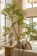 Introduce texture and visual interest with our Jacaranda Tree and sleek pot combination. Its finely detailed foliage unfolds in soft, feathery layers, adding depth and gentle movement to any space. With a slender, natural trunk, this tree offers a distinctive silhouette that enhances interiors without overwhelming the space.
